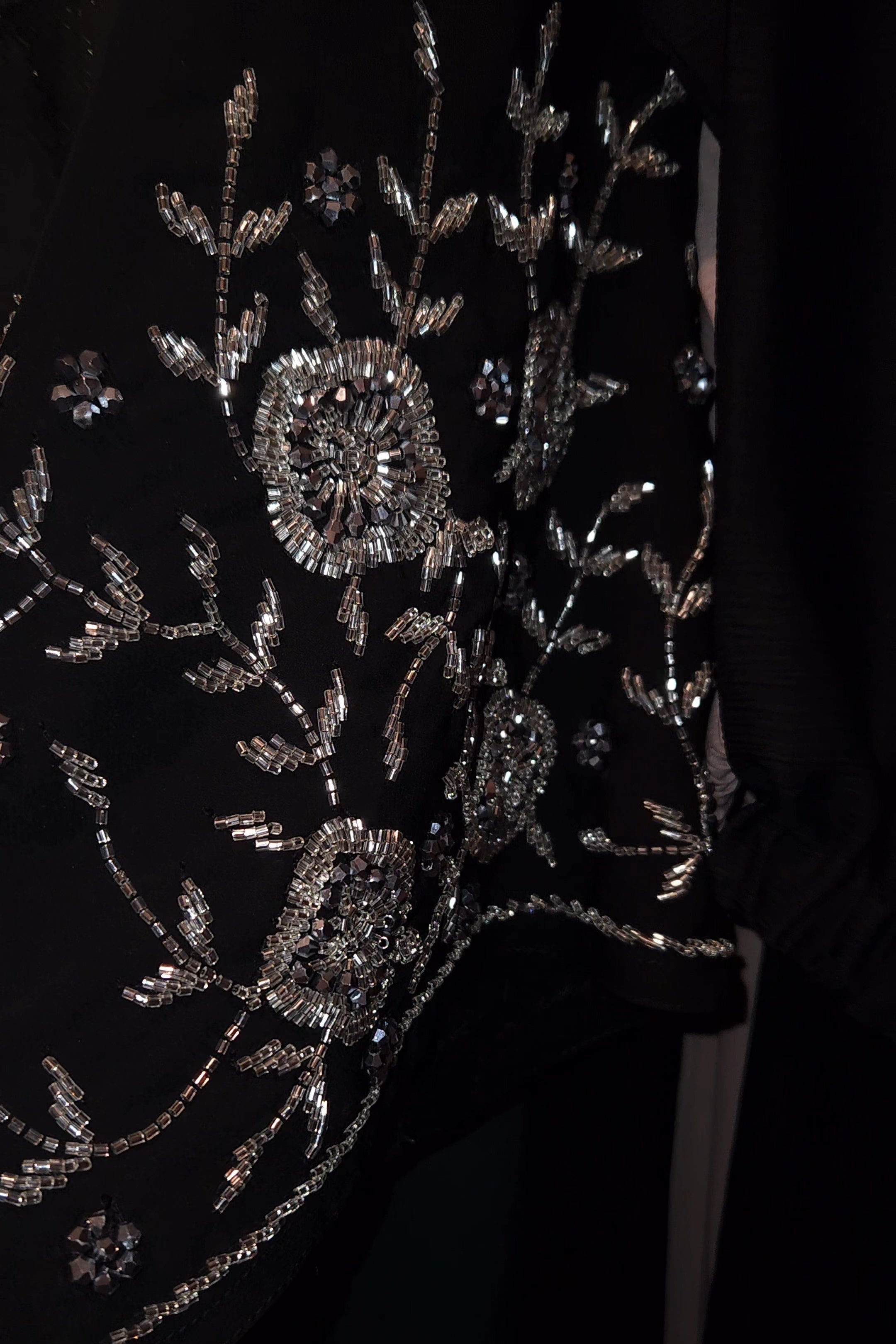 Introducing the Maha abaya, a stunning piece of occasionwear. This abaya comes in a classic black color and is made of premium korean nida featuring silver beadwork on the sleeves. Can be worn open or closed, with snap buttons approximately 3/4 way down aswel as within the sleeves. Additional matching chiffon hijab