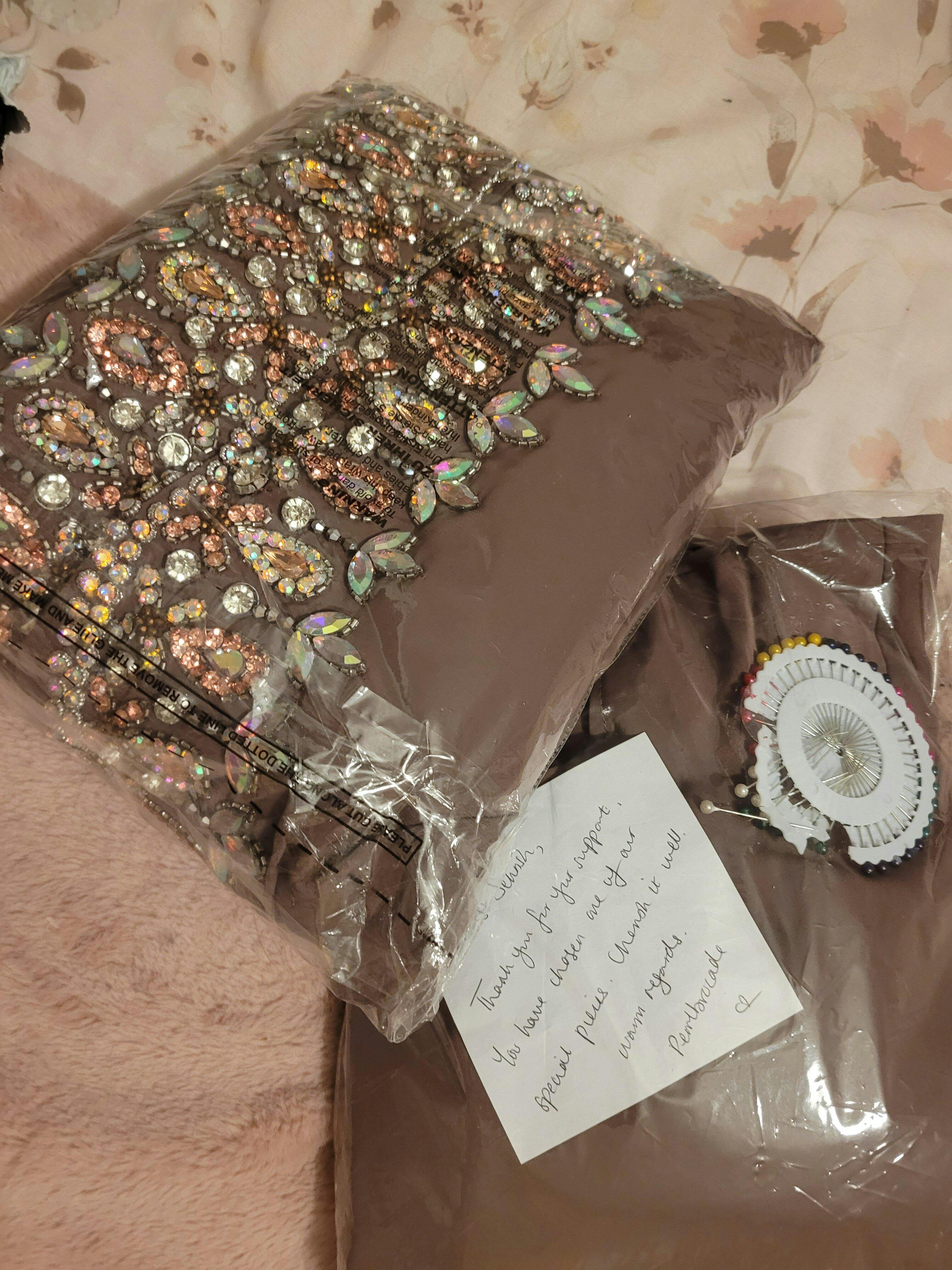 Amazing quality.. Bought as a gift for my mum. Under dress fabric is good quality. The beads are high quality. You can just feel the quality. I am so impressed with this purchase. The team even wrote me a lovely message which I thought was a nice touch. Came with the belt . Honestly show stopper outfit perfect for a weddings because there's a design on both the front and back. Blown away.
